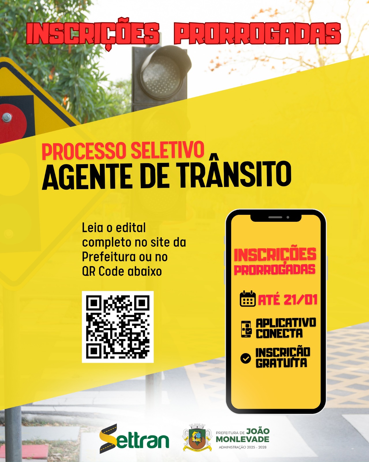 Prefeitura prorroga inscrições para Processo Seletivo de Agente de Trânsito A Prefeitura de João Monlevade prorrogou até o dia 21 de janeiro de 2026, às 16h, o prazo de inscrições do Processo ...