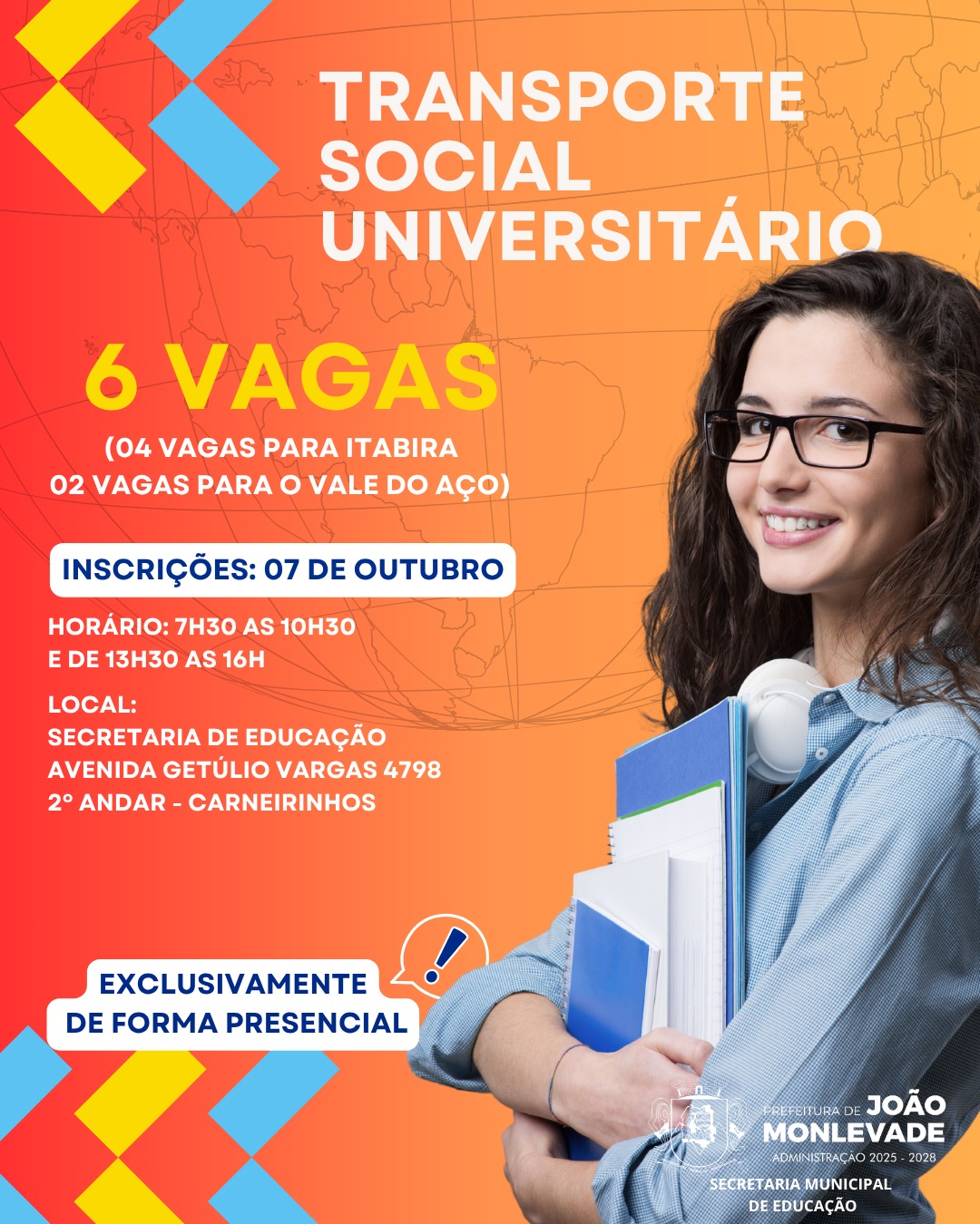 Prefeitura abre inscrições para o Programa de Transporte Social Universitário A Prefeitura de João Monlevade, por meio da Secretaria Municipal de Educação, publicou o Edital nº 32/2025 do Programa de ...