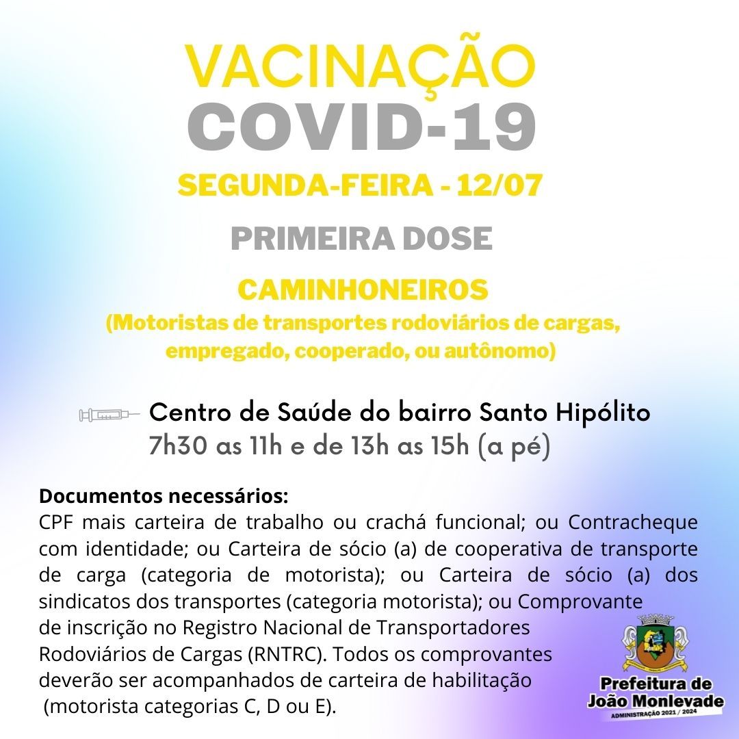Prefeitura vacina somente grupos prioritários na segunda-feira (12) Na próxima segunda-feira (12), a Prefeitura de João Monlevade, por meio da Vigilância em Saúde (Visa), vacina apenas grupos prioritários contra o coronavírus. No Centro ...