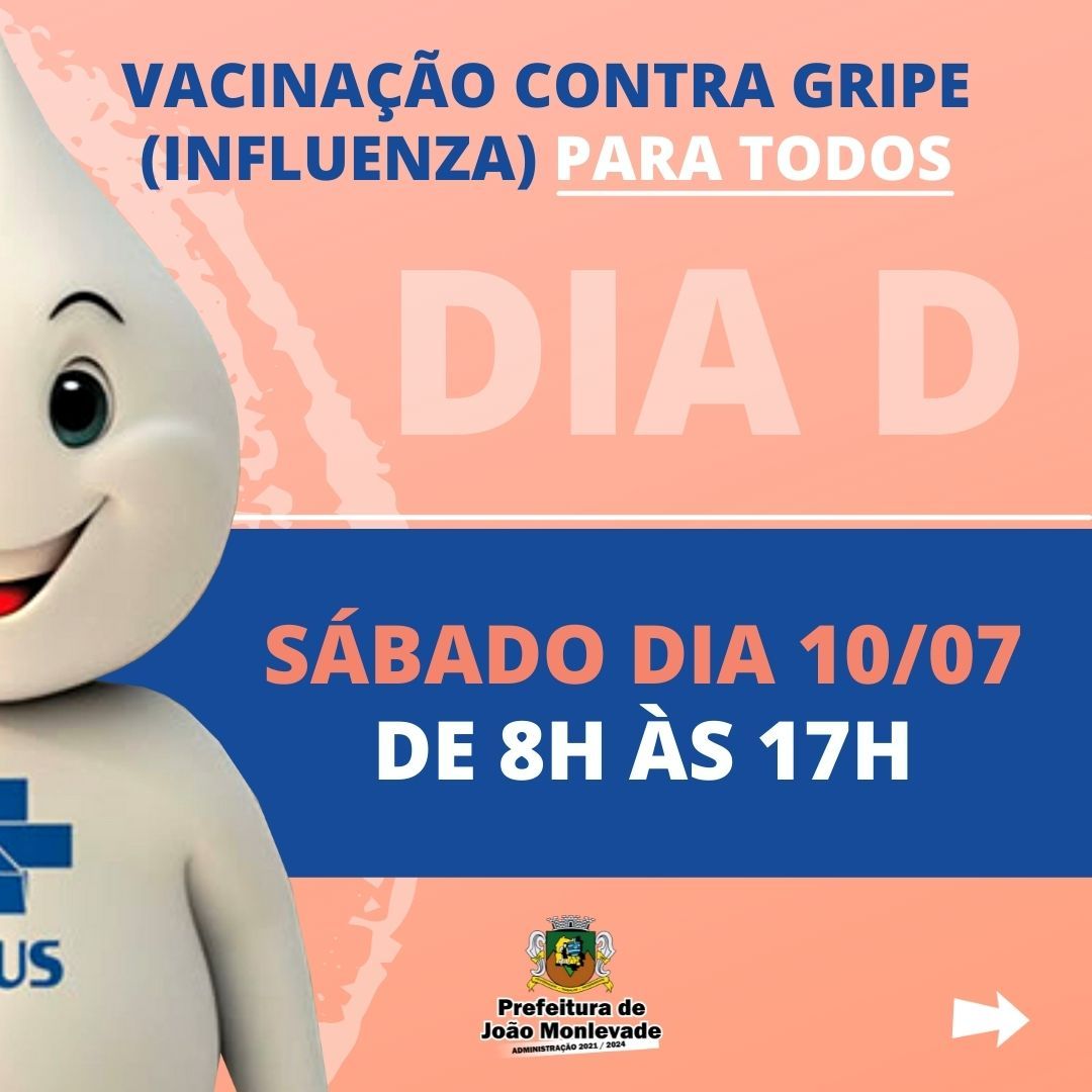 Prefeitura de João Monlevade faz “Dia D” para vacinar contra gripe no sábado No próximo sábado, dia 10 de julho, a Prefeitura de João Monlevade, por meio da Vigilância em Saúde (Visa), fará o “Dia D” de vacinação contra a gripe...
