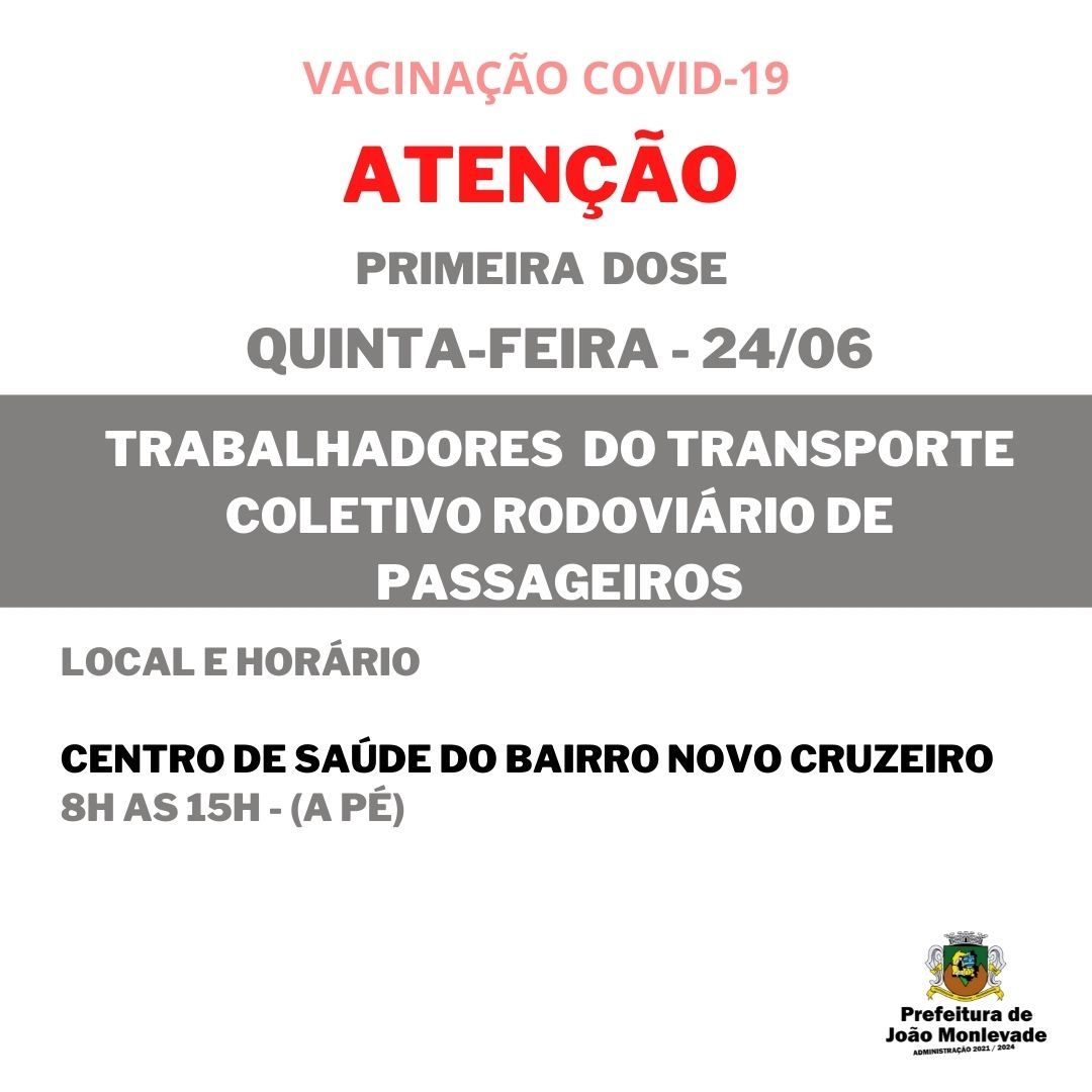 Prefeitura de João Monlevade começa a vacinar trabalhadores do transporte coletivo Nesta quinta-feira (24), a Prefeitura de João Monlevade, por meio da Vigilância em Saúde (Visa), começa a vacinar contra o coronavírus, os trabalhadores de e...