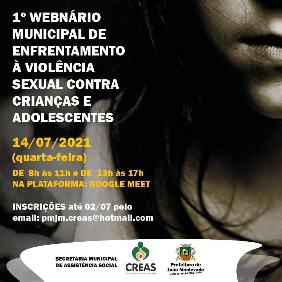 Webnário Creas debate enfrentamento à violência sexual contra crianças e adolescentes A Prefeitura de João Monlevade, por meio do Centro de Referência Especializado de Assistência Social (Creas) realiza no dia 14 de julho o I Web...