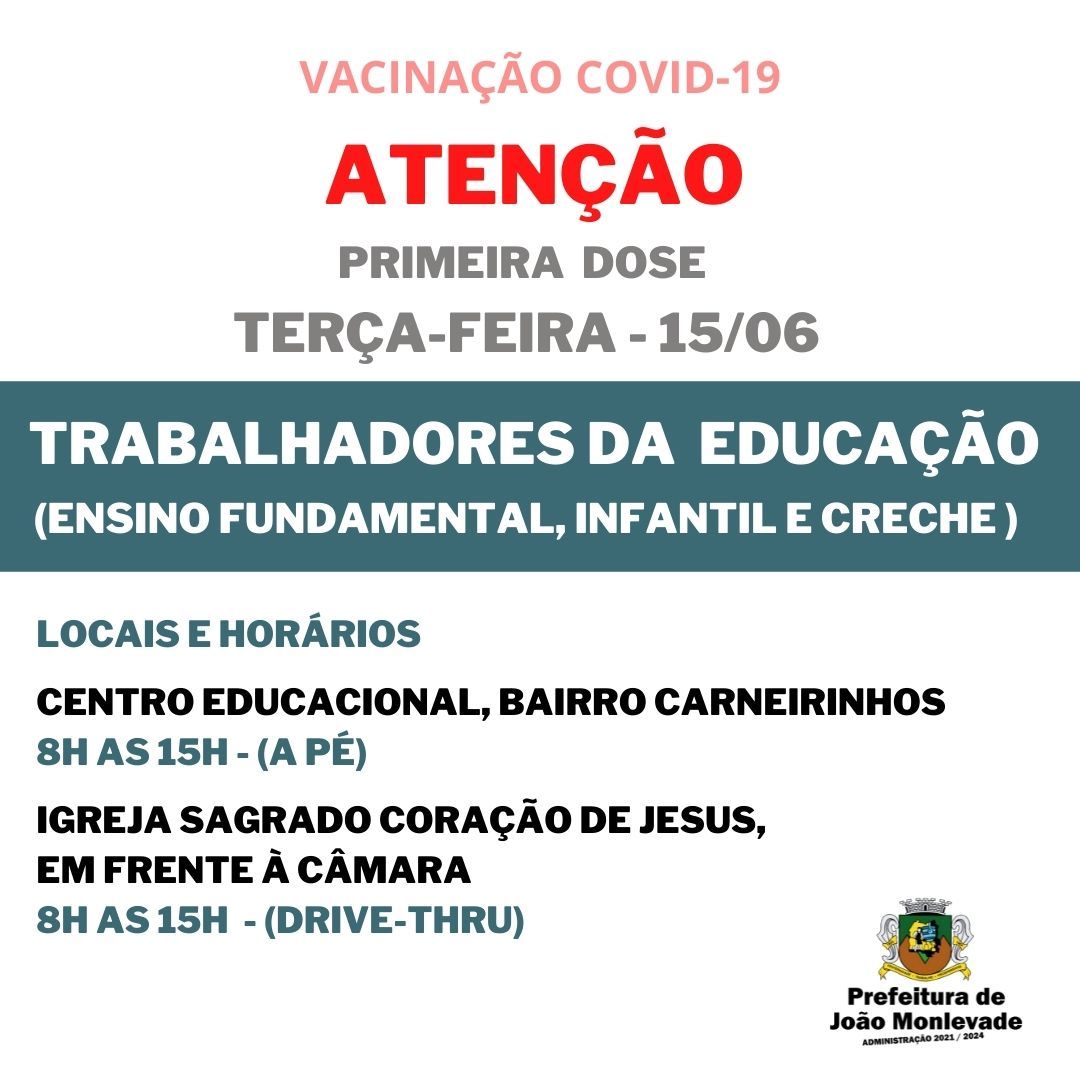 Prefeitura começa a vacinar trabalhadores da educação do ensino fundamental Vacinação de pessoas com 58 anos ou mais também continua Nesta terça-feira (15), a Prefeitura de João Monlevade, por meio da Vigilância em Saúde (Visa), com...