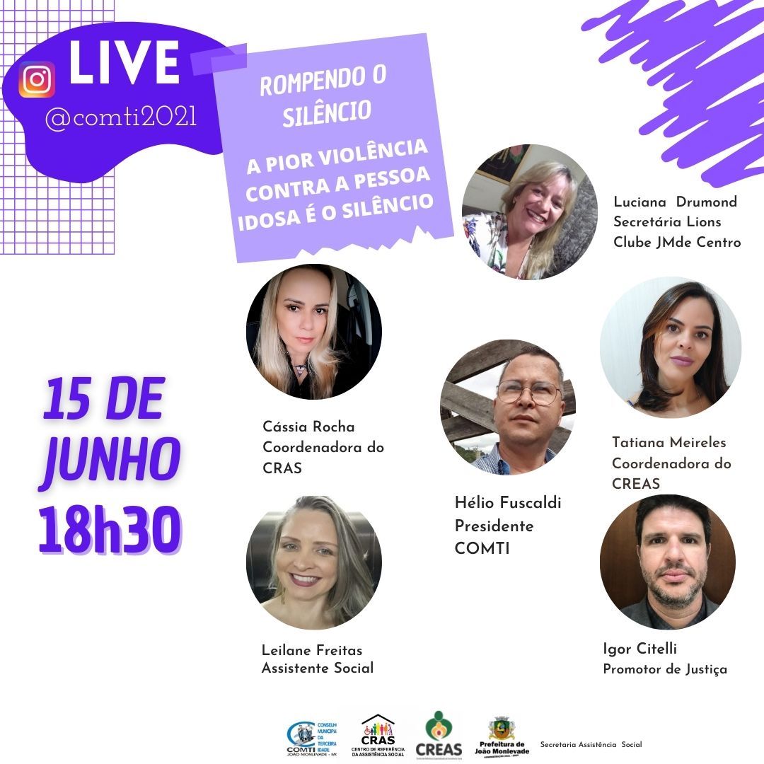 Prefeitura e Comti promovem live no Dia de Combate à Violência contra a Pessoa Idosa A Prefeitura de João Monlevade, por meio da Secretaria Municipal de Assistência Social, juntamente com o Conselho Municipal da Terceira Idade (Comti), Centro ...