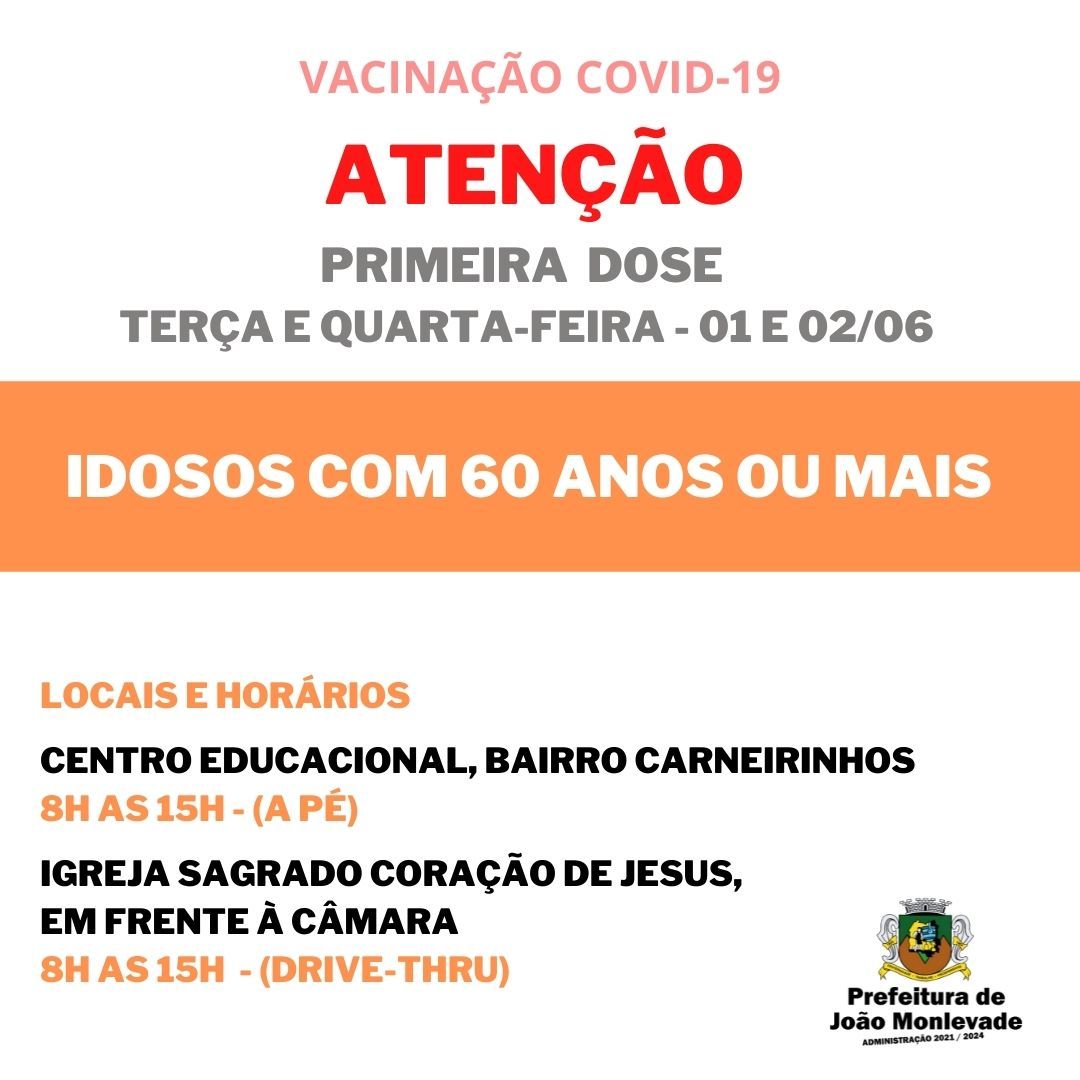 Prefeitura de João Monlevade retoma vacinação de idosos e suspende de puérperas e gestantes com comorbidades A Prefeitura de João Monlevade volta a aplicar a primeira dose da vacina contra o coronavírus em idosos com 60 anos ou mais. A aplic...