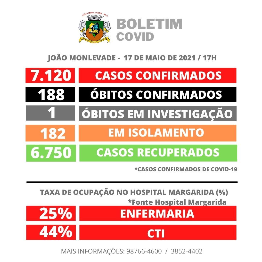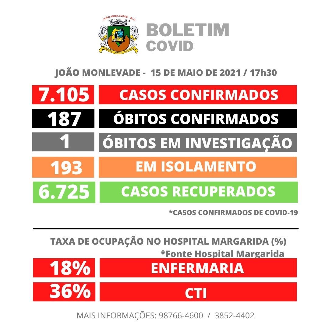 Sábado - 15 de Maio de 2021 Hoje foram notificados mais 5 casos de coronavírus em João Monlevade...