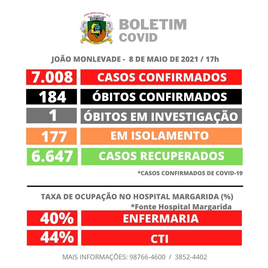 Sexta-feira – 7 de maio de 2021 Foram notificados hoje mais 5 casos de coronavírus em João Monlevade. Hoje foi confirmado óbito que estava em investigação de paciente do sexo masculino de 67 anos....