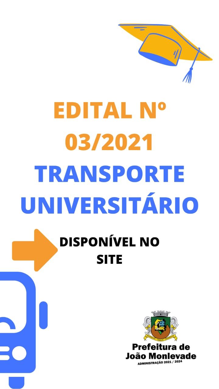 Educação abre inscrições para vagas remanescentes do Transporte Social Universitário A Prefeitura de João Monlevade, por meio da Secretaria Municipal de Educação, publicou edital de processo seletivo do Transporte Social Universitário. ...