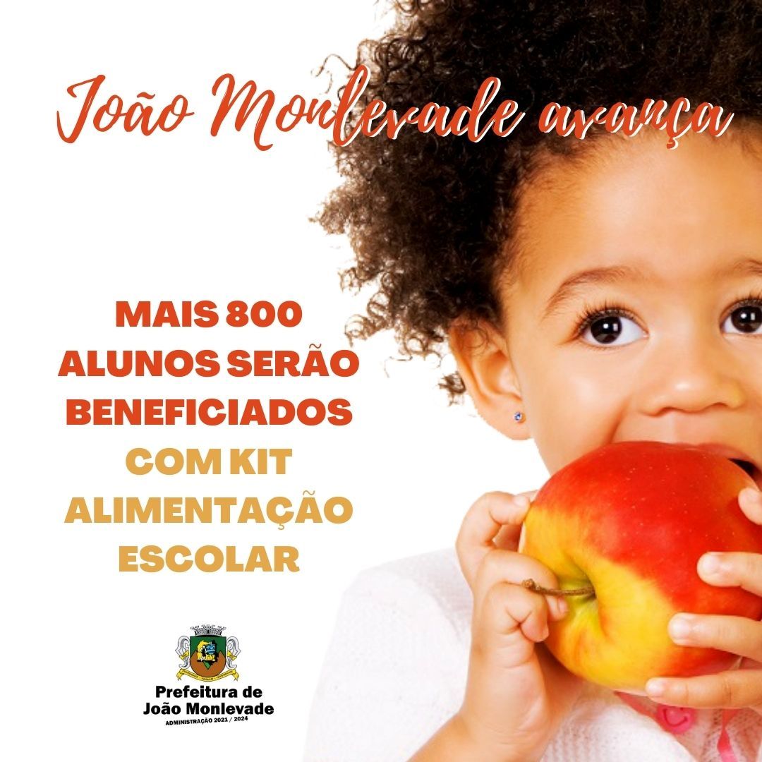 Kit Alimentação Escolar Mais 800 alunos serão beneficiados A Prefeitura de João Monlevade, por meio da Secretaria de Educação, entrega a partir da próxima semana o Kit Alimentação Escolar aos alunos da rede municipal. Os estudantes atend...