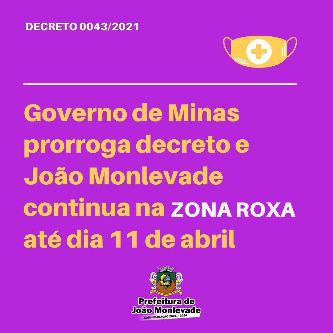 João Monlevade vai permanecer na Onda Roxa até 11 de abril por determinação do Governo de Minas João Monlevade permanece até o dia 11 de abril na Onda Roxa do Programa Minas Consciente. A decisão foi tomada nesta quarta-feira (31), pelo C...