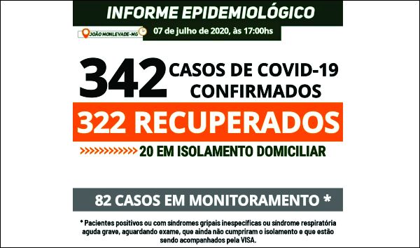 MONLEVADE TEM 342 CASOS DE COVID-19. AGORA, 322 PACIENTES ESTÃO RECUPERADOS DA DOENÇA Em informativos epidemiológicos divulgados anteriormente, dois homens, de 21 e 36 anos, foram erroneamente incluídos como pacientes de João Monlevade. Durante...