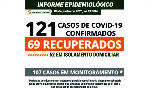 MONLEVADE TEM 121 CASOS DE COVID-19. AGORA, 69 PACIENTES ESTÃO RECUPERADOS DA DOENÇA Os casos confirmados hoje são: - oito mulheres, servidoras públicas da saúde, sendo que cinco, de 34, 35, 38, 47 e 50 anos, estão em isolamento domicilia...